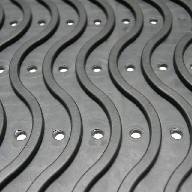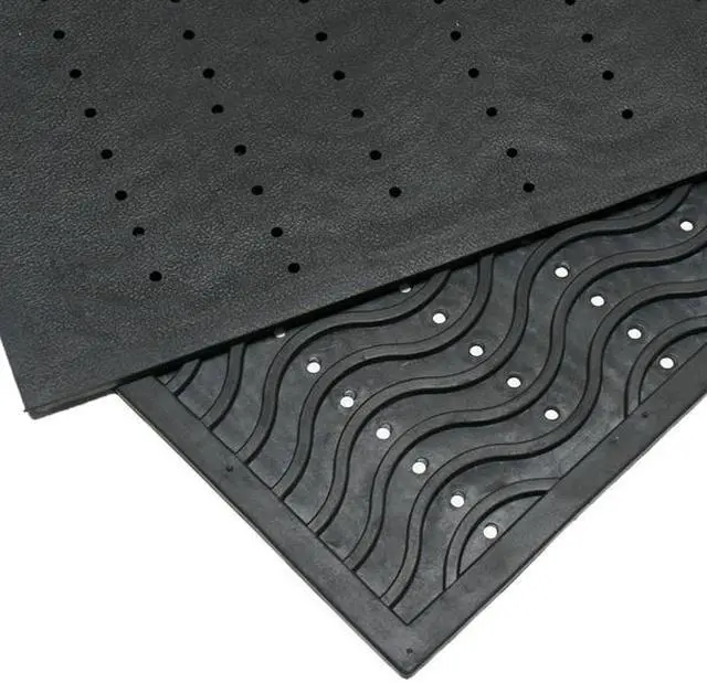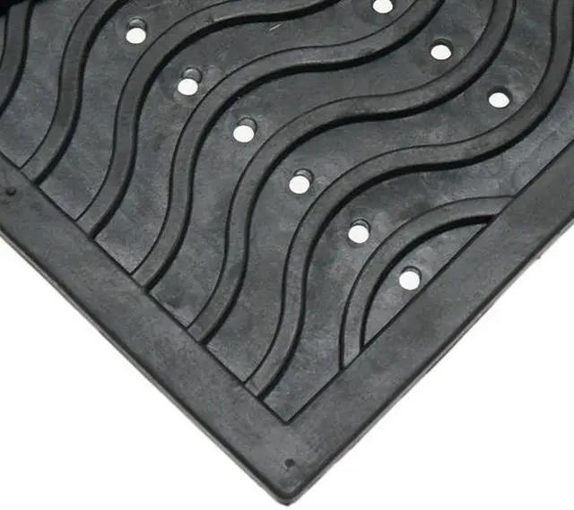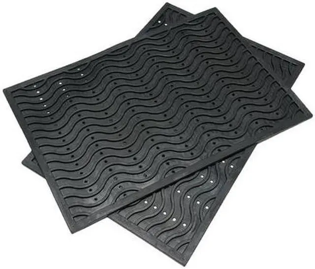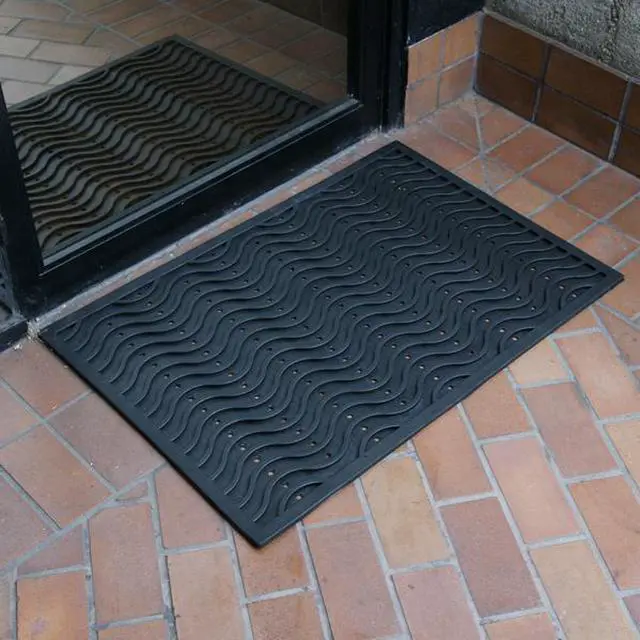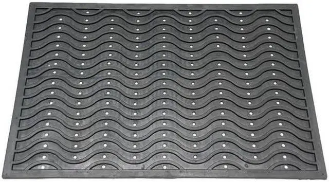 California Proposition 65: This product contains a chemical known to the State of California to cause birth defects or other reproductive harm. Rubber-Cal's "Dura-Scraper Wave" rubber entrance matting possesses some truly amazing qualities that make it perfect for a wide range of industrial and commercial applications. These rubber doormats measure at 3/8 inch thick, making them some of the thickest grip mats we offer. As a result, this commercial entrance mat provides a tough, heavy-duty surface that will protect floor surfaces from anything from heavy foot traffic to heavy-duty machinery. This floor protection mat works incredibly well as a large entrance mat or as support for standing workstations. Made from slip-resistant rubber material, these grip mats will provide excellent traction in any wet or slippery doorway. Because this entrance matting is made from reclaimed SBR and natural rubber materials, it is also naturally supple and flexible. More than that, these rubber doormats are some of the most durable mats in the industry! At 24 inches by 36 inches, this commercial entrance mat is also perfect if you need a runner that can cover a larger area; simply put a couple of these grip mats together to cover any surface! The "Dura-Scraper Wave" rubber entrance matting is also incredibly easy to clean and maintain.
