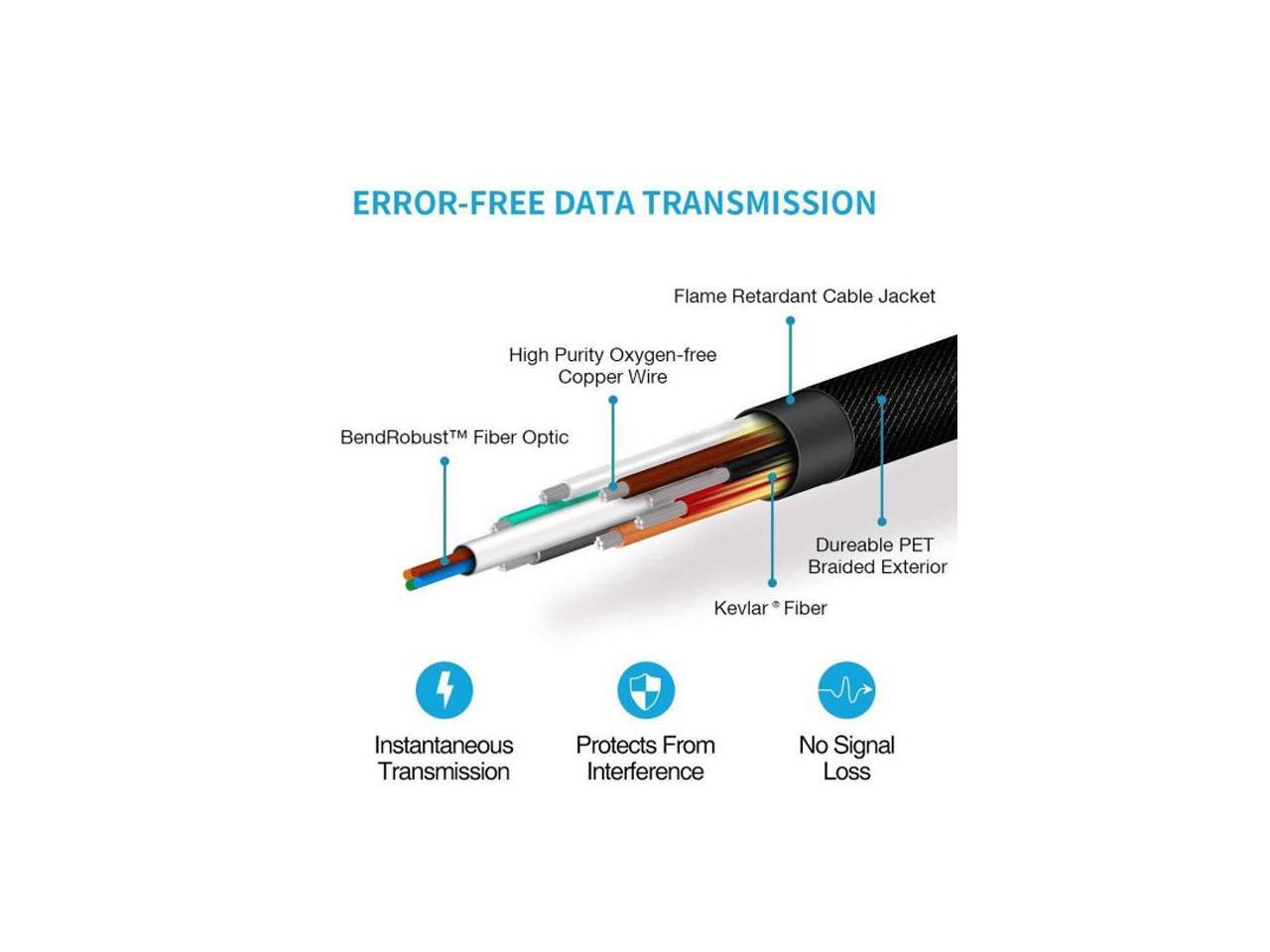 Cablecc DVI AOC Cable 50M Active Fiber Optic Fast Transfer Ultra FHD 4K 60hz