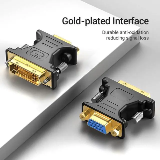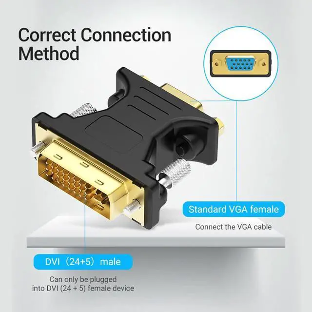 DVI 24+5 Male to VGA Female Converter DVI to VGA Adapter VGA Monitors Specifications: Product color: Black Type: Adapter Material: Plastic shell Product function: Used in computer host,connected with all kinds of monitors and digital TV 1.Most graphics cards are equipped with DVI-I (24+5) interface, and monitors and projectors are mostly equipped with VGA interface. If you want to use dual monitors,you can be DVI to VGA interface to achieve. 2.It can be used in DVI to VGA devices,such as video cards,digital signals, analog signals,and monitors and projectors with only VGA interfaces! 3.Gold-plated DVI pins to ensure high-quality signal transmission Easy to install,Plug and Play. Package Included: 1 x DVI 24+5 to VGA converter adapter Kindly Reminder: Graphics cards and other output devices DVI into VGA must be 24+5 DVI interface that can be converted to VGA. 24+1 DVI interface,can not be converted to VGA. Notes: Due to the different monitor and light effect, the actual color of the item might be slightly different from the color showed on the pictures. Thank you!