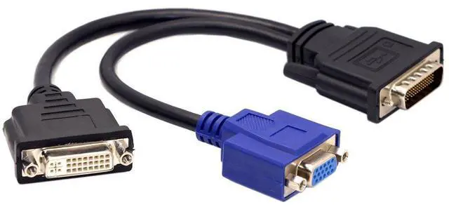Splits your video card DMS59 Pin output to allow use of 1- DVI and 1 - VGA connected Monitor at the same time;Suitable Replacement For: Foxconn P/N 31028822