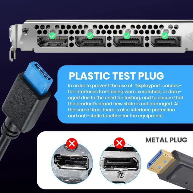 Displayport Cable 1.4This DP to DP Cable Short, with 1feet of cable length, and use the LCP of material, can prevent the DP interface from being worn, scratched and damaged due to the industrial of testing, and mainly used in factory equipment testing, can protect the device's interface without scratches & anti-static.
