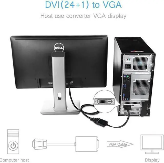Active DVI-D to VGA Converter connects desktop computers and laptops (major brands like Lenovo, Dell, HP, ASUS, etc. ) with DVI-D to VGA displays, supporting HDTV resolution up to 1080p @60Hz and PC graphics resolutions up to 1920 x 1200 @60Hz. It is ideal solution for your office, home entertainment display, etc. without upgrading them.