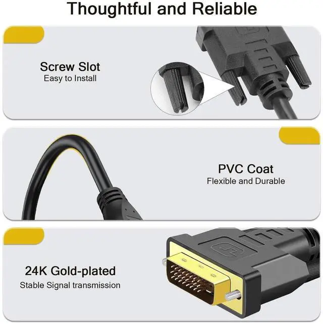 1. This is a DVI to HDMI cable, is NOT VGA or DP Cable! Please confirm the required interface before purchase.