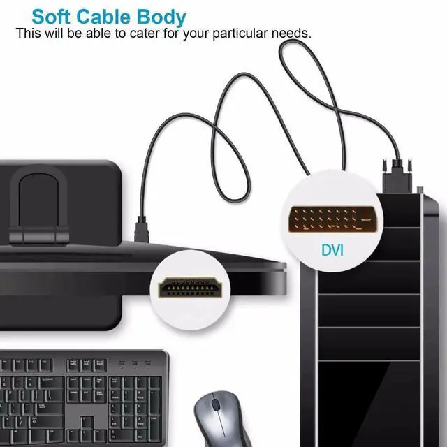 [Solid Fall Protection]This hdmi-dvi made with gold-plated connectors,three layer shielded wire and molded strain relief for durabilityprotect against EMI and RFI noise for static-free video transmission.
