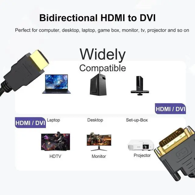 [Strongly Compatible]The bi-directional HDMIto DVI adapter is a great solution for connecting from a computer with DVI/HDMI port to computer,laptop, Raspberry Pi, Roku, Xbox One, PS4, PS3, Graphics Card and more.