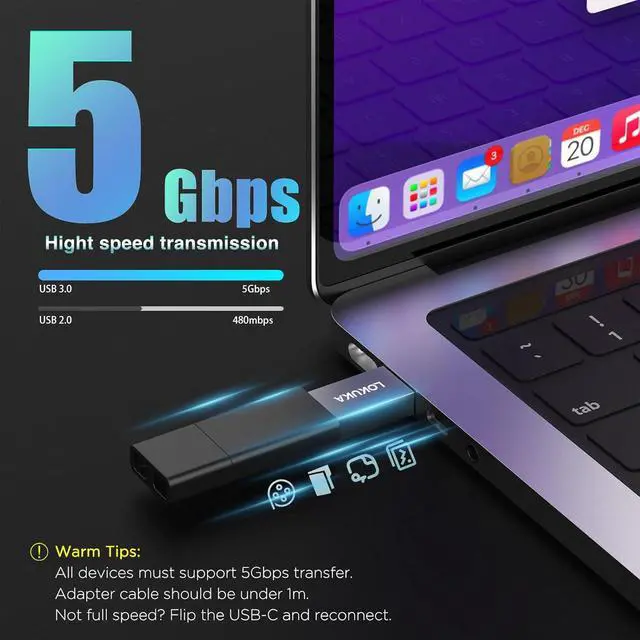 Value 3-Pack for Versatile Use - Get more from your devices with this LOKUKA USB-A to USB-C adapter 3-packideal for use at home the office or on the go. Easily connect your older accessories to newer USB-C devices such as Mouse Keyboard Hard Disk Microphone Flash Disk USB Hub Card reader Printer Camera Gamepad to your USB-C computer. Keep your devices connected wherever you are without switching cables. High-Speed 5Gbps Data Transfer - Engineered as a USB A to C adapter with USB 3.0 support it provides transfer speeds up to 5Gbpsideal for quick backups media transfers and syncing large files efficiently.