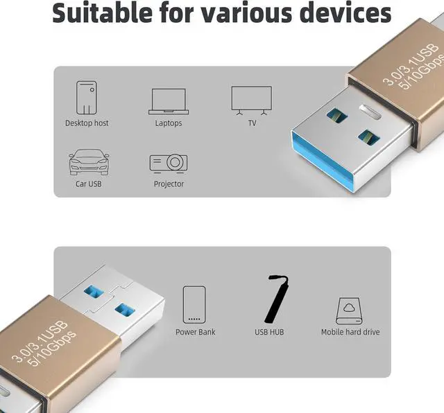 Universal CompatibilityThis USB Male to Male Adapter is compatible with Windows PC desktop External Hard Drive Laptop Cooling Pad DVD player USB 3.0 hub Monitor Camera Wacom Set-Top Box Blue-ray Drive Car Bluetooth Speaker 2.5 -Inch External Hard Drive Enclosure with Type A USB 3.1 port and most USB 3.0 port. USB 3.1 High Speed Data TransmissionThis USB 3.1 A to A male Adapter supports 10G Data Transfer Speed 20W /5A Power Charging. Transfer files HD movies and songs to your USB-C devices in seconds. If your device is usb 2.0 or usb 3.0 standard this USB 3.1 adapter will automatically be downward compatible backward are compatible with computer USB 2.0 (480 Mbps) and USB 3.0 (5Gbps) ports.