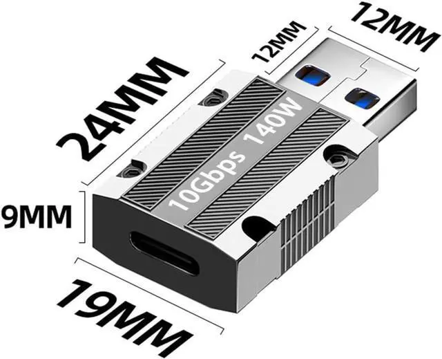 Note: When the USB A Female port of the computer is USB 3.1 Gen2 it could reach 10Gbps. Fast Charging10Gbps USB-A to USB-C Adapter supports fast charging up to 140W 20V 5A. Unlike other brands that only support 1-3A charging USB A to USB C Adapter 10Gbps charges your devices faster and more efficiently. Durable and ReliableSay goodbye to the frustration of adapters falling off during plugging. USB C Female to USB Male Adapter is made of zinc alloy die-casting ensuring durability and longevity. The top matte texture provides a safe comfortable and pleasant plugging experience. Wide CompatibilityUSB A to USB C Adapter 10Gbps Designed for ease of use it offers plug-and-play functionality without the need for any drivers is compatible with USB-C mobile phones tablets USB-C hard drives earphones USB-C hubs and docks to be connected effortlessly to your USB A-port host devices such as PCs laptops car chargers wall chargers and USB hubs and various other Type-C peripherals. Enjoy seamless connectivity and enhanced functionality across a wide range of devices. Compact and PortableTake the lightweight USB-C to USB-A Adapter with you wherever you go. Allowing for secure storage in your backpack purse pocket briefcase desk drawer or any other desired location.