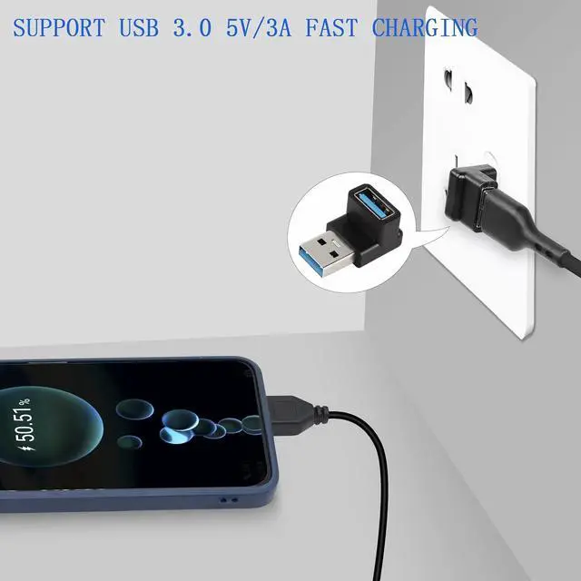 90 Degree AngleUSB 3.1 right angle male to female adapter used to extend the USB cable in narrow space so that the cable can be attached to the device without damaging the cable or device port extending the service life. 10Gbps90 degree USB 3.1 right Angle adapter data transfer speed up to 10Gbps allowing you to transfer large capacity files in seconds backward compatible with USB 3.0 / 2.0 / 1.0 series and support charging up to 5V/3A. OTGUSB A male to female adapter support tablet computer to connect auxiliary devices such as gamepad mouse keyboard etc.
