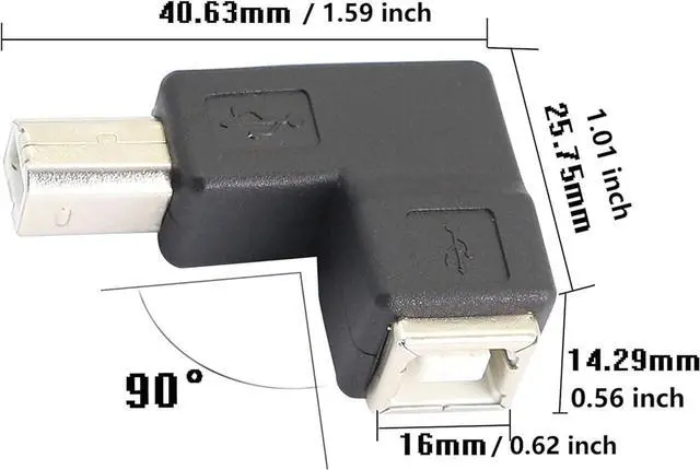 Angle Support90 degree angle USB B male to female adapter used to change the direction of the USB port. It can prevent the cable from being bent or damaged. It can also protect the original USB port of the device.