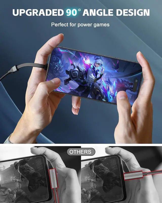 Right Angle Design: Our MEOU USB-C to USB-C cable boasts a 90-degree C-port on one end offering a comfortable and strain-reducing connection. This innovative design enhances durability and makes it perfect for gaming watching videos or reading e-books while charging. Experience unparalleled convenience and comfort for extended periodsBuild to