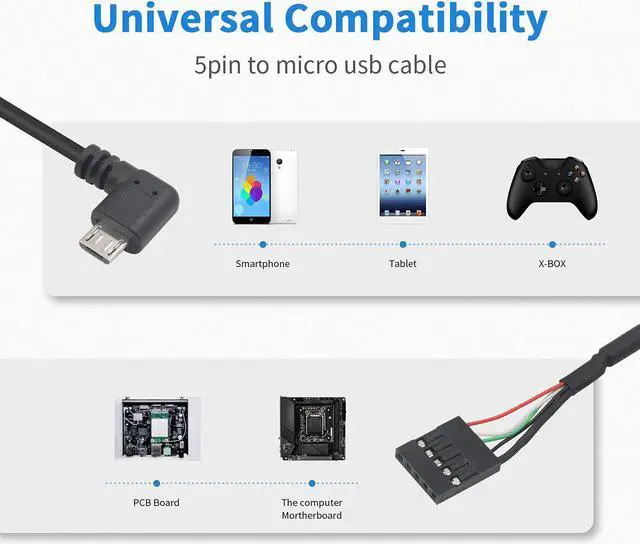 Package: Micro USB Male to 2 * 5Pin Dupont Cable 50cm. 2 pack