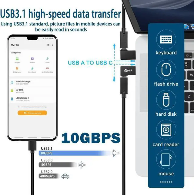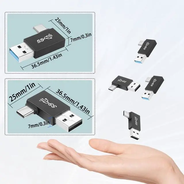 Note: Only support USB A to USB C one-way. USB A to USB CUSB 3.1 to USB C 90 degree angle converter plug convert device USB port output to USB C input for Wall charger cell phone PC laptop Power Bank. USB 3.1USB to USB 3.1 L-shaped adapter plug data transfer rate up to 10Gbps support QC60W (20V/3A)/PD15W (5V3A) fast charging. 90 degree angleUSB A male to USB C male right angle adapter plug 90 degree right angle design make the alignment tight to your PC laptop or Wall Charger avoid damage due to bending and extend the life of the cable. Aluminum + CompactUSB 3.1 Plug to USB C Plug 90° Right Angle Adapter. Aluminum casing sturdy and durable. Delicate and compact can be left in the USB port without causing interference avoiding wear and tear of the device's port due to multiple unplugging.