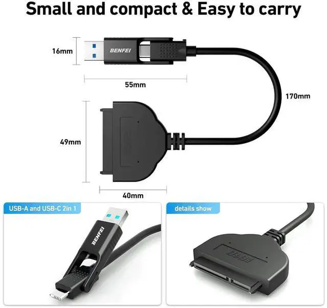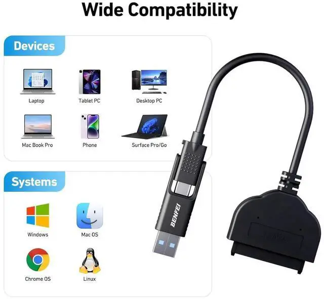 USB 3.0SAVE TIME: The hard drive transfer cable lets you easily swap between drives with no need to install the drive inside an enclosure. Its plug-and-play and doesnt require drivers. 18 MONTH WARRANTY - Exclusive BENFEI Unconditional 18-month Warranty ensures long-time satisfaction of your purchase; Friendly and easy-to-reach customer service to solve your problems timely.
