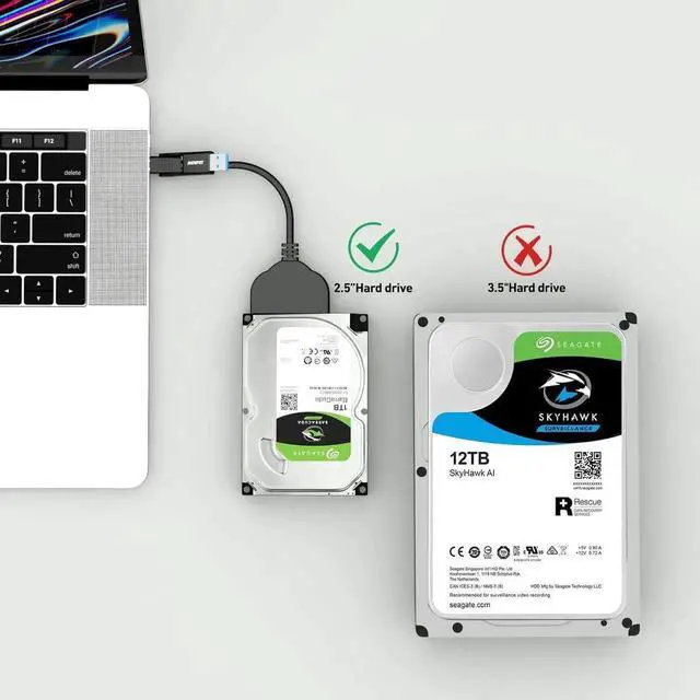 SSD OR HDD: Add drive space to your laptop by connecting to a SATA 2.5 SATA SSD or HDD using this SATA to USB cable. You can connect to an external drive to: add storage perform backups create disk images implement data recoveries and transfer content to your laptop. Cable will work ONLY with 2.5 SATA drives.? 3.5 / 5.25 and M. 2 drives are NOT SUPPORTED.