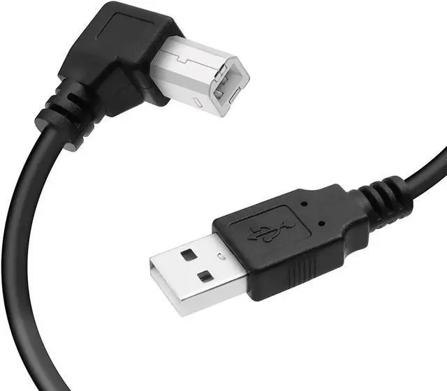 PREMIUM QUALITY: The right angle USB 2.0 printer cord features gold-plated contacts and aluminum foil/braid shielding effectively reduces signal loss making the SB 2.0 male to USB B male cable more stable in data transmission (no noise or signal loss). 90 Degree USB to Printer