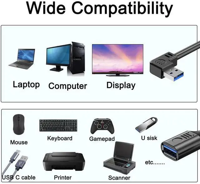 Degree Angle Design: Right angle degree USB adapter can be selected to change the interface direction to avoid bending USB cables and relief the strain on USB ports. Save your spaces and prevent cable damages against bendingExtend Your