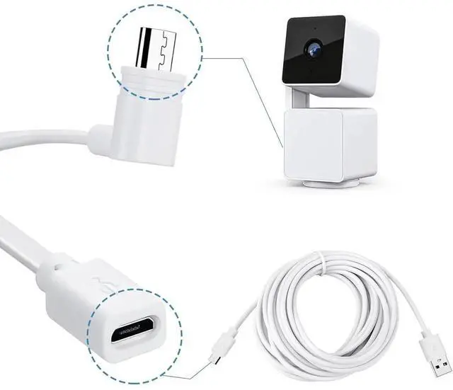 Compatible with WYZE Cam Pan v3 indoor/outdoor security cameraMicro USB male-to-female extension cable90-degree right angle connector same as the original cableNo need for a separate l-shaped cable by combining this extender cord with a common micro USB cable you can easily connect and use your cameraPack of 4 you can set up multiple security cams or keep some in reserve