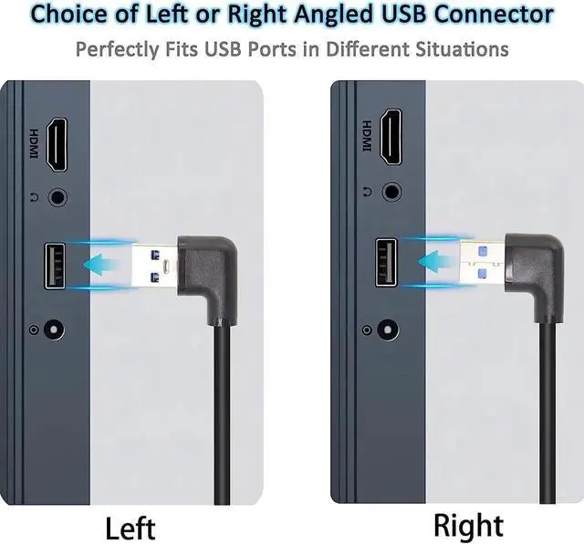 ? Angle Design for Narrow SpaceRight Angle 90 Degree USB A 3.0 extension cable saving the space and keep your table clean also can avoid breaking the USB ports due to bending at the same time.? The Left angled 90 degree usb 3.0 extension cable perfect for space saving and connection in narrow space. And design can make for better cable management in some situations especially in tight spaces.? Supports Super speed data transfer rate of up to 5 Gbps that is about 10 times faster than USB 2.0. Support version of USB 3.0 also backward compatible with the USB 2.0 / 1.1 version.