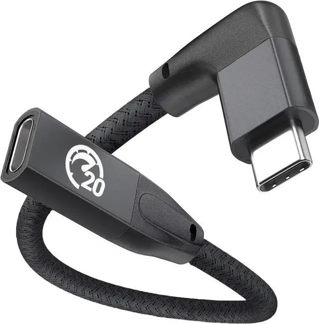 New Right-angled USB-C Extension Cord--Innovative 90 degrees L design Protect the plug and extend the life of cable by reducing the strains of everyday use. The USB-C Extensions extend the reach of your existing USBC cables which makes it easier to connect devices for greater convenience; Support charging and data transmission for audio or video (4K). This Male to Female USB C Extender supports Power Delivery up to 100W providing the fastest possible charging for your devices. Data transfer speeds up to 20 Gbps allowing you to transfer bulky files like an HD video in seconds.