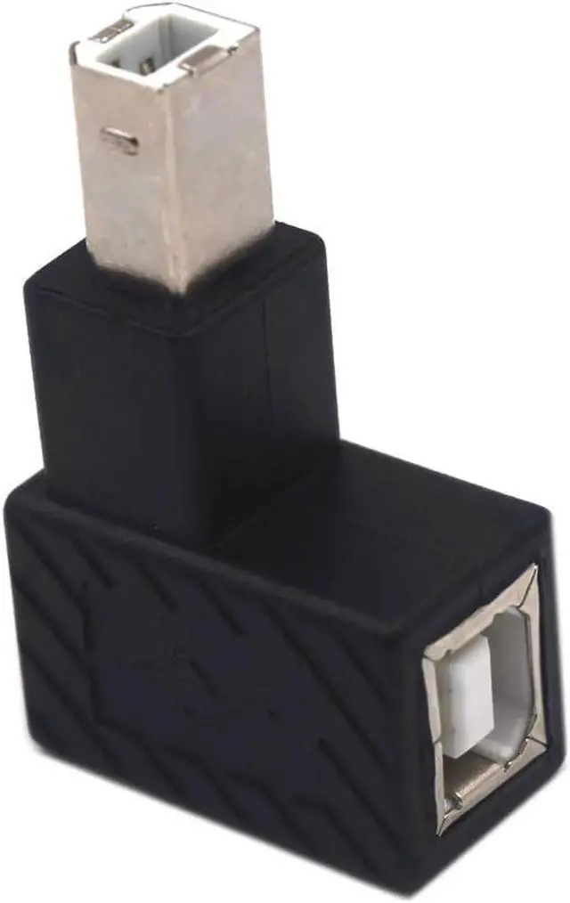 Connector PortsUSB type B to USB type B Male to FemaleFeature FunctionPrinting and Data Transferring Extension AdapterAngle Support90 Degree Angle. Left/Right/Upward/DownwardHidden WiringThe USB Type B extender solves special space connection beautifies surroundings around the computer desk and can also be connected to wiring hidden behind furniture or in more complex environments. Widely UsedIts suitable for connecting USB type B port equipment to computer for data communication file transfer printing etc. 3.5 inches Mobile hard disk laser printer receipt printer inkjet printer etc.