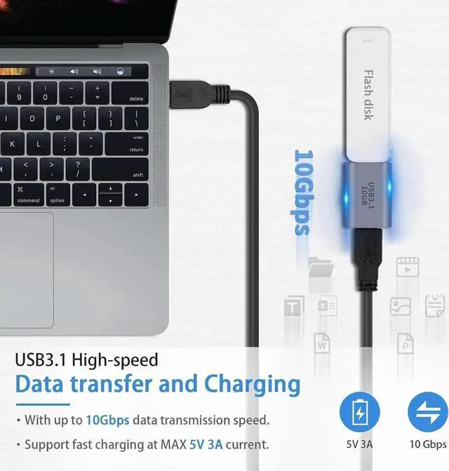 USB C Female to USB Female Adapter is standard USB 3.1 Gen 2 easily converts a USB Type A port into a USB C port supports USB 3.1 speed the max output current 3A which can fast charge and data transferUSB C female to usb a female adapter supports OTG function no driver required plug and play. If your device is usb 2.0 or usb 3.0 standard the adapter will be automatically backward compatible. The usb c 3.1 female-to-usb a female adapter has a data transmission speed of up to 10