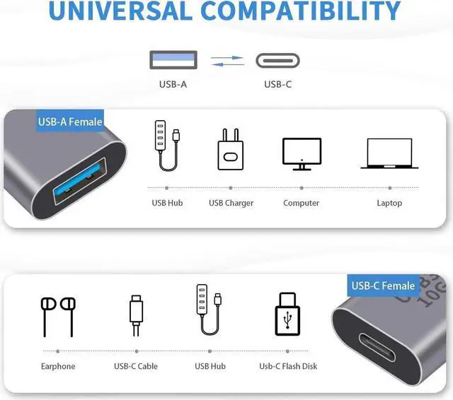 Gbps note: Not support the video and audio. The usb a female to usb c female is light and compact in size. The appearance is made of wear-resistant and pressure-resistant aluminum alloy shell which has strong oxidation resistance and strong heat dissipation. It's compact and easy to carry without putting any burden on you. USB female to usb c female adapter compatible with connect phones Power Bank tablets flash drives mouse hubs and other USB C peripherals to your laptops and chargers.