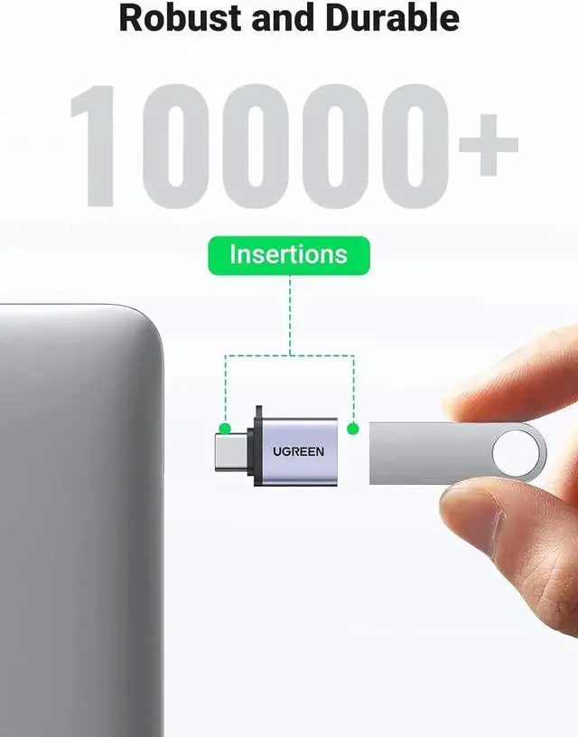 Enhanced Adapter Durability: The USB to USB C adapter is designed to be plugged and unplugged up to 10 000 times and is made of high-quality scratch-resistant aluminum alloy for excellent wear resistance and heat dissipation.