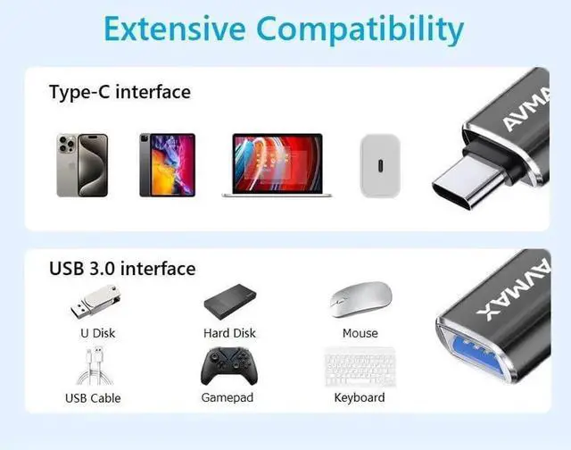 Widely Compatibility: This USB C to USB A adapter is compatible with iMac MacBook Pro Air iPhone 16 15 iPad Surface Galaxy S24/S23/S22/S21 and more. It is highly compatible and supports for a wide range of devies.