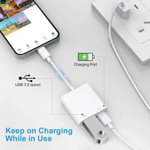 ![Alt view image 6 of 7 - JAENFONG Lightning to USB Camera Adapter for iPhone [ MFi Certified] USB3.0 Female Adapter for iPad with Charging Port Plug and Play OTG Converter Support Card Reader USB Flash Drives Keyboard](https://c1.neweggimages.com/productimage/nb640/C280S25092003CN247C.jpg)