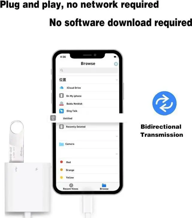 Charge Your iPhone and iPad: This USB adapter for iPhone adds a charging port for iPhone/iPad charging and viewing photos or videos can be operated at the same time. Don't worry about the power shortage of your phone anymore. More importantly this USB-to-iPhone adapter can also allow you to share battery power with your friends and solve your friends' urgent needs.