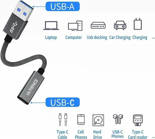 NOTE: CANNOT BE USED TO CONNECT A COMPUTER AND MONITORFAST CHARGING: The ULTIENCE USB C female to USB male adapter cable support up to 60W 3A fast charging ensuring your devices power up quickly and efficiently. Perfect for busy professionals who need reliable high-performance charging on the go (OTG)