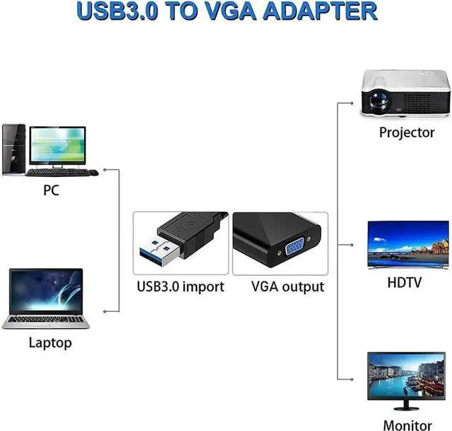 USB to VGA Adapter for Monitor VGA to USB 3.0/2.0 Converter 1080P Multi-Display Video Cable for Laptop Desktop PC to Monitors Projector TV. (Not Support Chromebook)