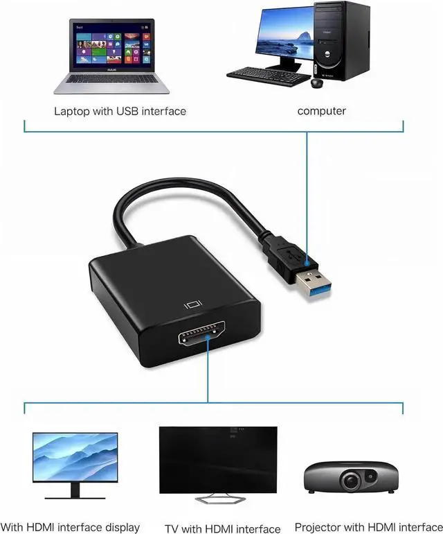 (not work with Linux ChromeOS and other system device at all! )Easy Setup USB A 3.0 HDMI Adapter- Our hdmi usb adapter has built-in driver and comes with very clear User Manual all you need to do is follow the instrction and install the corresponding driver reboot the computer connected to the monitor and start to enjoy. No CD/website driver or extra power needed! (please make sure you connected this adapter directly to the computer instead of thru any hub or dock! )HD HDMI to USB Adapter- Herfair usb to hdmi adapter for monitor supports up to 1080P resolution at 60Hz ensuring your videos and graphics come through crystal clear giving you an awesome viewing experience for movies games presentations and more.