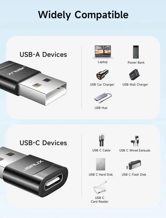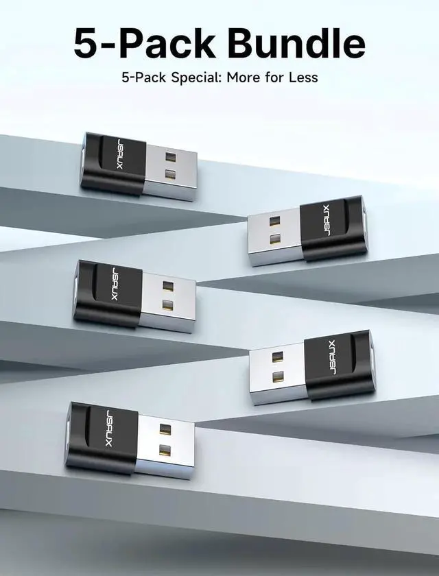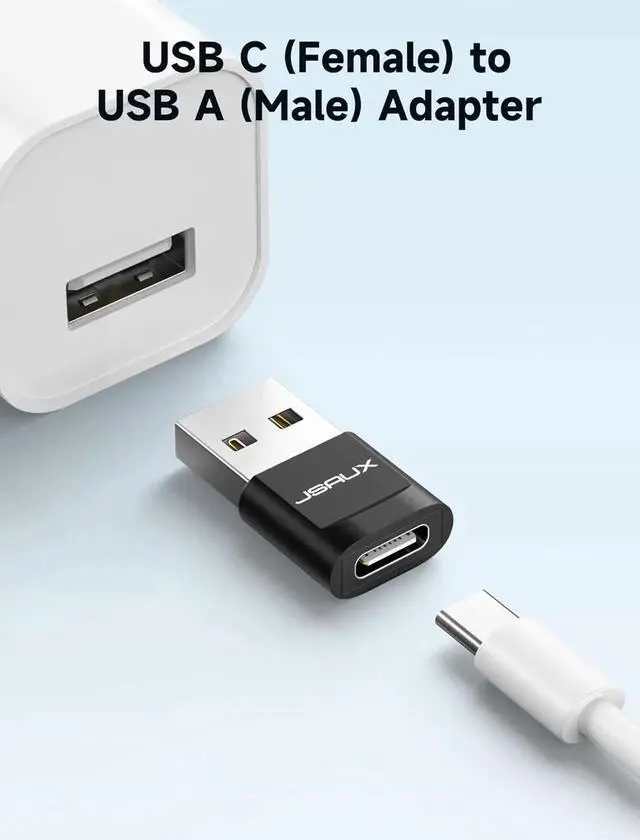 Note: Supports MagSafe chargers with 18W+ USB powerFast Charging & Sync C Charge at 3.1 A and transfer data up to 480 Mbpspower and speed combined. Perfect for fast charging your phone or transferring files between your laptop and external storageSafety First C The JSAUX Type C to USB adapter features an IC safety chip that protects against short circuits overcurrent overvoltage and overheating ensuring safe charging for your devices. Ideal for overnight charging or powering sensitive electronics with peace of mind5-Pack & Portable C Comes in a handy 5-pack ideal for multiple setups home office or sharing with family and friends. Compact and travel-friendly they save space while boosting convenience perfect for carrying in your laptop bag or travel kitCompatible