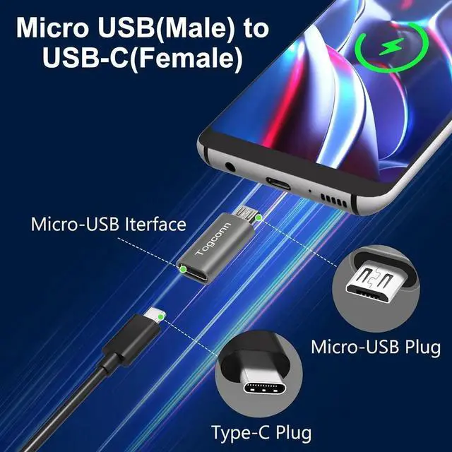 USB Adapter: This USB-C female to Micro USB male converter plugs into the USB C male port allowing you to use a USB Type C cable to charge and synchronize Micro USB mobile devices while reducing the number of cables you can carry with youFast Sync and