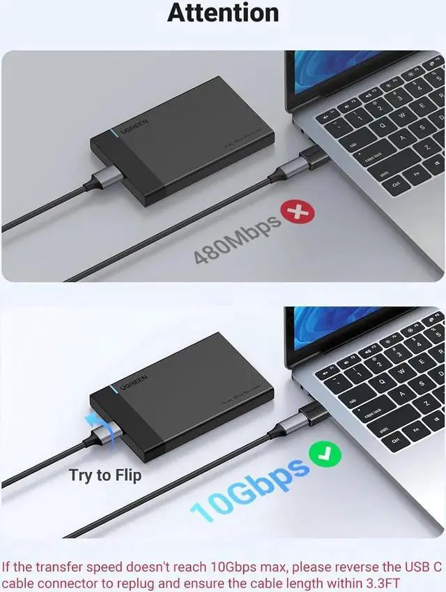 Pro 2022/2021 and moreNote: If the transfer speed doesn't reach 10Gbps max please reverse the USB C cable connector to replug and ensure the cable length within 3.3FT