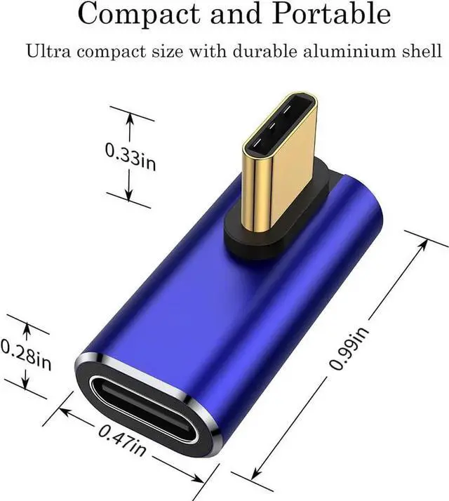 Enhance Device Durability with 90-Degree Design - This adapter features a 90-degree right-angle connection to reduce cable strain protect USB-C ports from loosening and extend the lifespan of your devices. Next-Generation USB4 Compatibility - Enjoy cutting-edge performance with support for 40Gbps data transfer 100W power delivery and stunning 8K@60Hz video output. Fully compliant with USB4 or Thunderbolt 4 and backward-compatible with previous standards. Premium Durability in a Compact Design - Built with a premium aluminum alloy shell for durability the ultra-compact and lightweight design makes it easy to carry and store. Engineered to withstand 10 000+ plug-and-unplug cycles for long-lasting reliability.