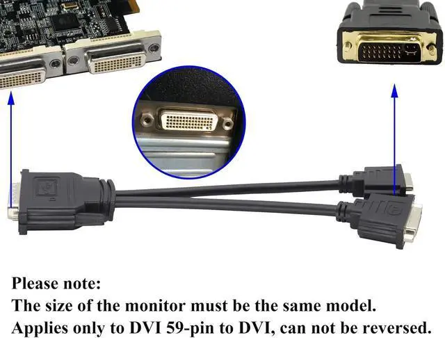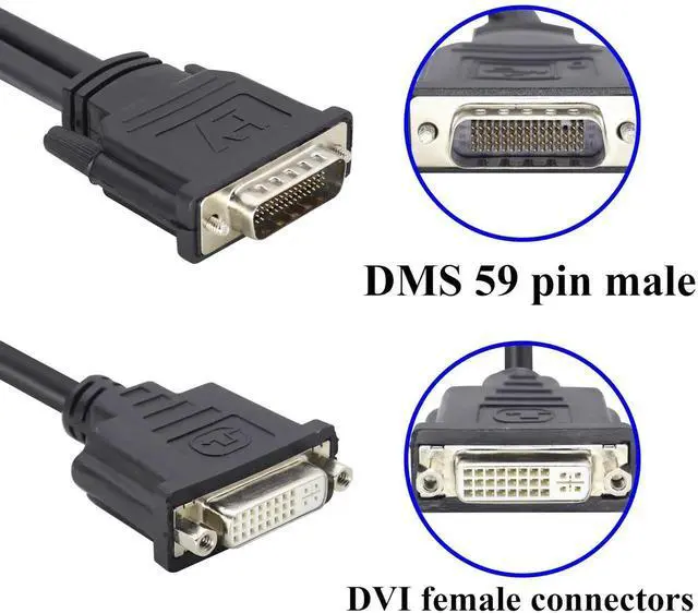 Applies only to DVI 59-pin to DVI, can not be reversed. Note: 1.DMS 59 pin male is very similar with DVI 24+1 or 24+5, so please do not regard this as DVI adapter. 2: when you connect DVI cable from our cable to your DVI monitors, DVI 24+1 or 24+5 Cable will be both Compatible.