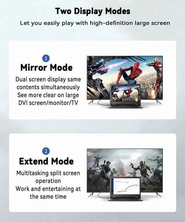 USB Type-C to DVI-D Adapter Cable provides a cost-effective and easy solution for connecting and streaming USB-C devices (with DP Alt Mode) to a DVI display such as monitor, projector, TV.