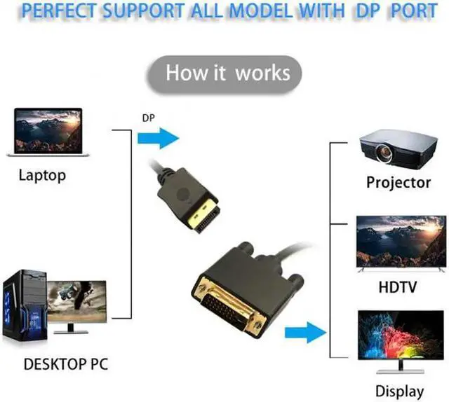 This is a DisplayPort to DVI Cable for interfacing next generation DisplayPort based PC and notebook computers with conventional DVI displays, such as CRT, LCD monitors, and projectors.