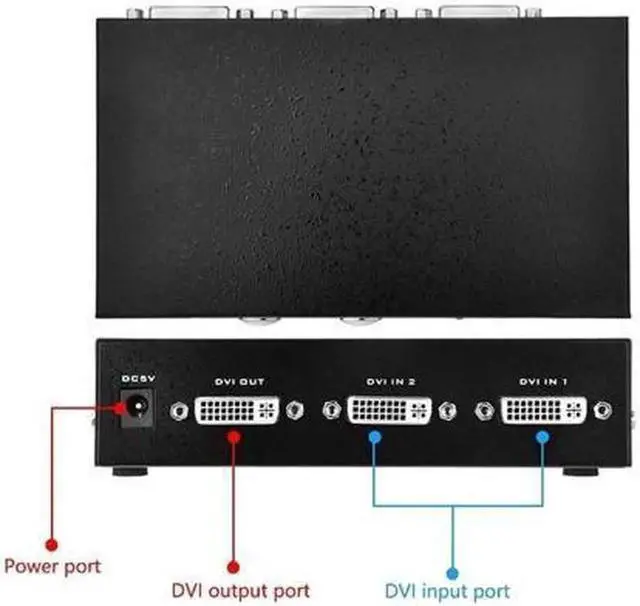DVI Switch Box, 2 in 1 Out DVI Selector for PC Laptop DVR Projector HDTV DVI Port Devices, Support 1920x1440, 165Mhz Bandwidth