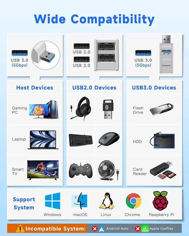 Convenient for hanging and storage a cap protects the USB male from knocks and bumps. What You Get We provide 18-Month Warranty and 24/7 hours customer service for you. If you have any questions for FORIDA usb hub ptoducts we will resolve your issue within 24 hours. Pls feel free to purchase with confidence. Excellent MaterialThis USB Extender hub made of high-quality ABS material good heat dissipation ultra-light and more stable transmission ensuring that the transmission effect will not be interfered or weakened by the adapter.