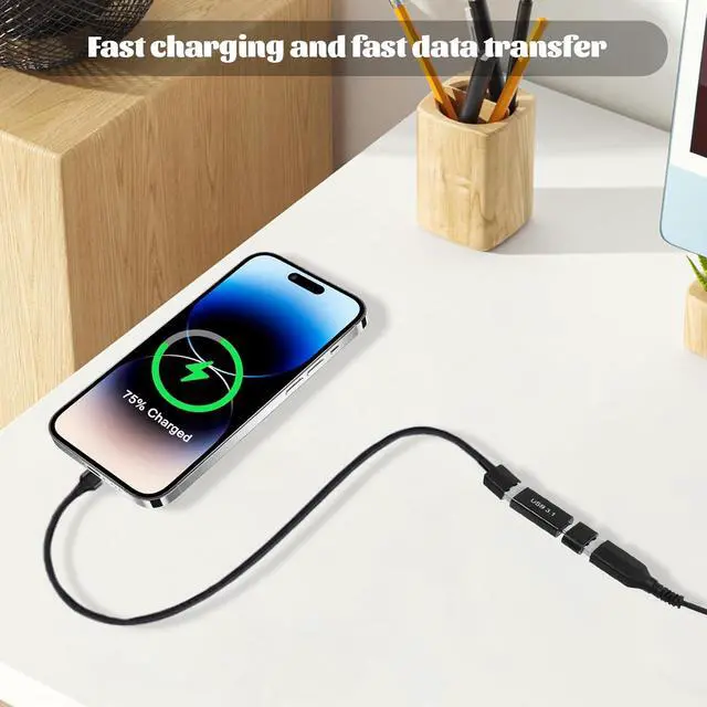 Simply plug it in and start using it immediately. Its perfect for extending USB-A and Type-C cables joining them together for seamless connectivityWide CompatibilityThis adapter is compatible with a variety of devices including laptops desktops smartphones tablets flash drives mouse hubs and other USB C peripherals to your laptops and chargers. It supports fast charging and data transmission making it a versatile tool for both personal and professional use