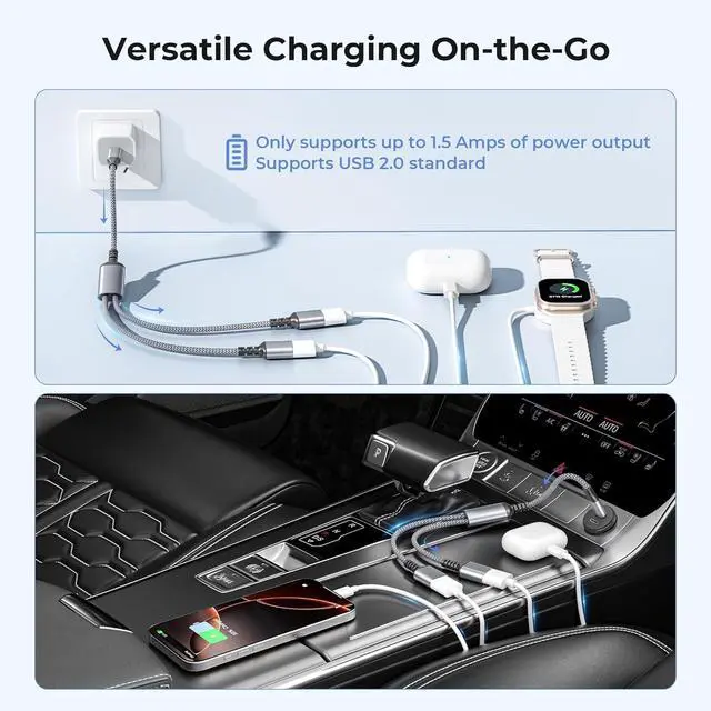 (The Catch) No product is perfect neither is this one. The rated voltage and current is 5V and 2A for this adapter meaning each sub-cable of this adapter gets 1A when they are used at the same time. For more info refer to the detailed description down below. (Less Constraint More Freedom) Need more USB-A ports because all the new gadgets are coming without them? This USB-C to Double USB-A Adapter could just be your life-saver. Now you can use your USB-A heritage accessories with the help of this splitter even on devices with only one single USB-C port.
