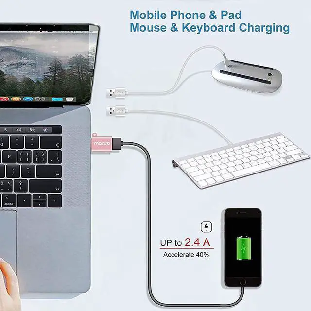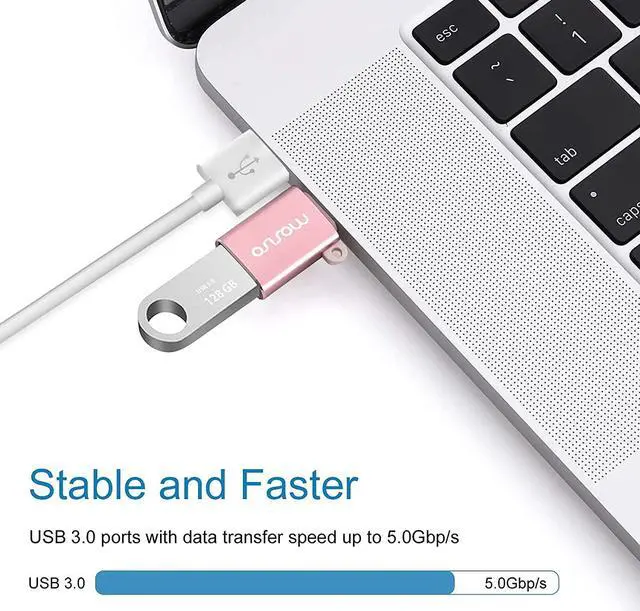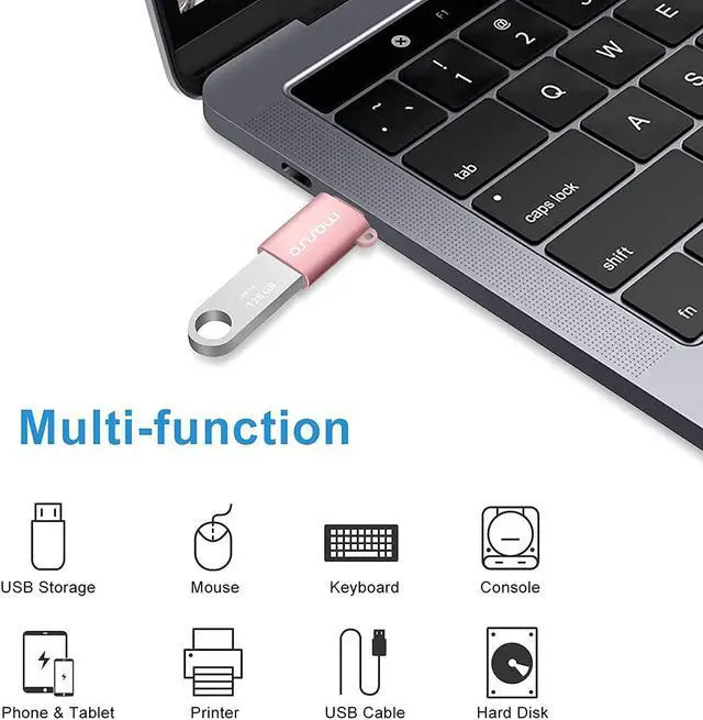 Compact dimension: 1.18 x 0.5 x 0.3 inch. 2 pack per set. As our most considerate design 1 anti-lost rope is included for easier carrying. Our USB C to USB adapter fits laptop/Notebook/tablet/Phone with USB Type C port. Compatible with MacBook Air after 2018; compatible with MacBook Pro after 2016; compatible with iPhone 15/15 Plus/15 Pro/15 Pro Max; compatible with most of the laptops PC tablets and smartphones with a USB Type C port; compatible with other devices with USB Type C port. Plug the adapter USB Type-C end into laptop USB-C port then connect another female USB 3.0 port to standard USB-A device such as mouse keyboard SSD flash. Support OTG function to load USB flash disk directly. This USB-C to USB-A connector also support synchronous charging to your phone and tablet with data transfer speed up to 5.0G bps. This Type C to USB 3.0 converter is made of Aluminum alloy with baking finished surface. Smooth but scratchproof. It will not affect Wifi signal cause heat issue.