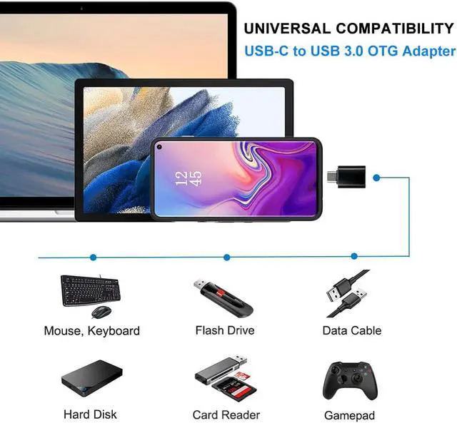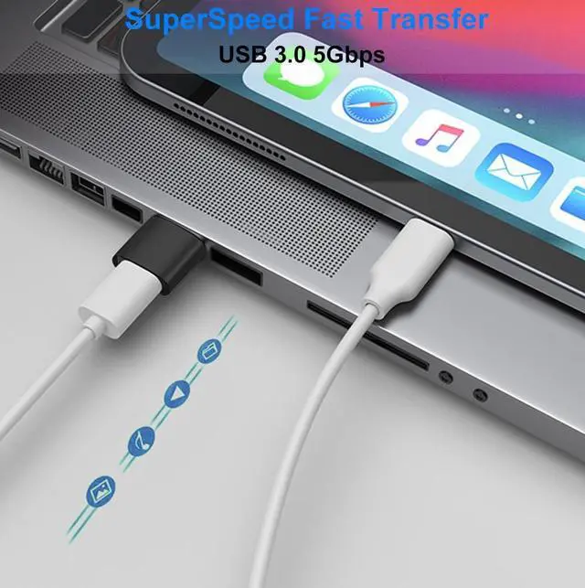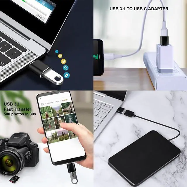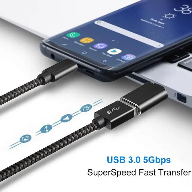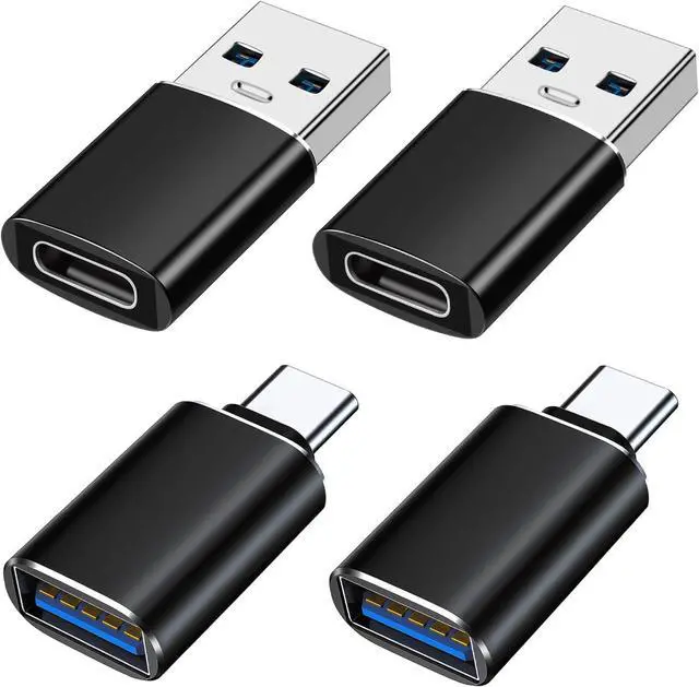 Pack of 4: USB-C female to USB-A 3.0 male adapter 2 pcs and USB-A 3.0 female to USB-C male OTG adapter 2 pcs. Both types of USB C adapters convert USB-C ports and regular standard USB ports to each other at will and you'll find them so handy. Compatible with usb cables usb chargers usb flash drives usb card readers usb c headphones smartphones tablets laptops and other mobile devices. Plug-and-Play it supports fast charging USB OTG (On-The-Go) function. The USB-A 3.0 female to USB-C male OTG adapter with 5Gbps fast data transfer speed and the USB-C female to USB-A 3.0 male adapter with 5Gbps fast data transfer speed on one side. Please note that they do not work with video signal transmissions such as HDMI VGA DP etc. You can keep one at home one at the office and one in the car to meet the needs of different occasions. If you only have a USB-C to USB-C cable or USB-C to other ports cable then with the help of this little USB C to USB adapter you can easily charge your mobile devices quickly and transfer data on any occasion. USB to USB C