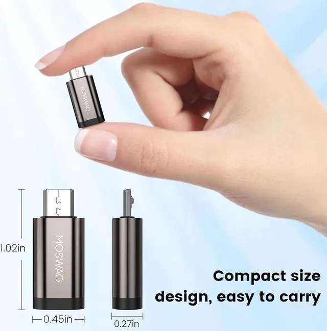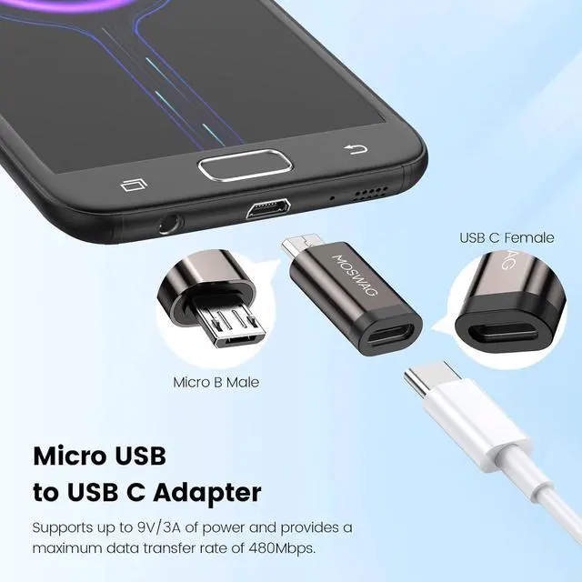 Design: MOSWAG USB C to micro adapter is designed to compact it is not only easy to carry but also very convenient to use no software driver or complicated installation required making your multi device charging and data transfer simpler than ever.
