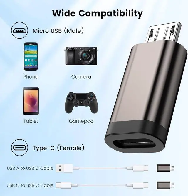 Data Transfer and Charging: This micro adapter provides data transfer and charging the micro adapter supports maximum data transfer rate of 480Mbps and provides 3A of power at the same time excellent and stable capabilities ensure smooth data transmission and charging processesYou