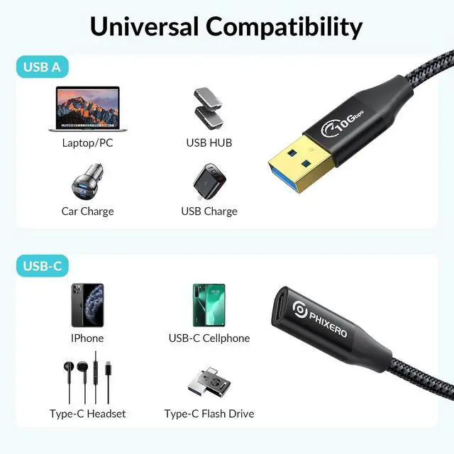 Perfect Length to Extension- USB C female to USB male adapter is designed for extending the connection devices with USB-A port while converting to a USB-C port. Effectively solves the problem of desktop in a mess caused by short usb c hubs. Support data transfer and charging. 10Gbps Data Transmission- The USB 3.1 Gen 2 type c adapter is designed for high speed data transfer up to 10 Gbps (1050MB/s) 2x faster than USB 3.0. It can sync photos videos and musics in seconds greatly improve efficiency. Stable and Safe Charging- This USB A to Type C converter supports up to 15W(5V/3A) fast charging works with QC 3.0 charger Supports connecting Magsafe or other wireless chargers.